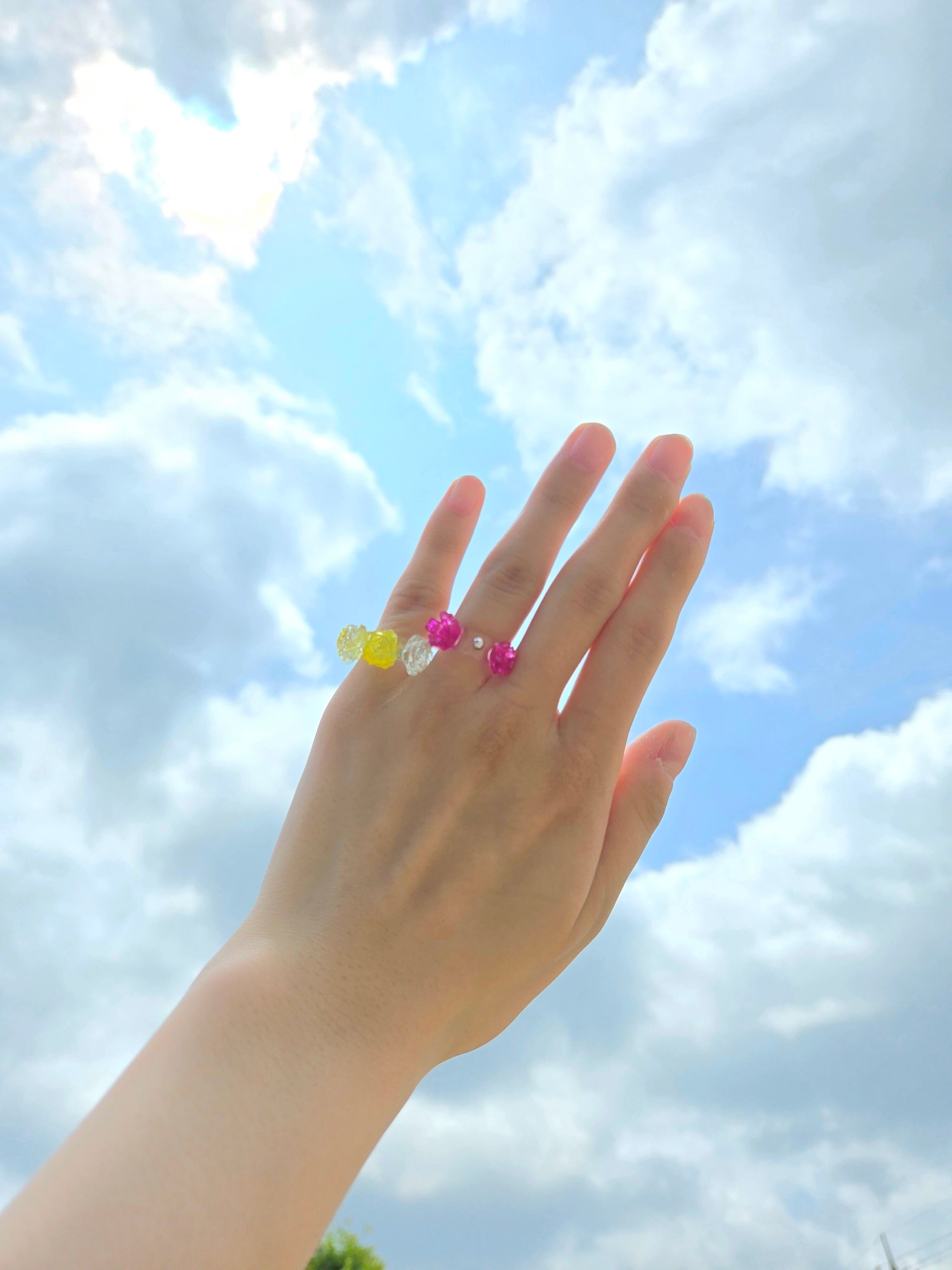 レジンとバラのゆびわ❁⃘*.゚
