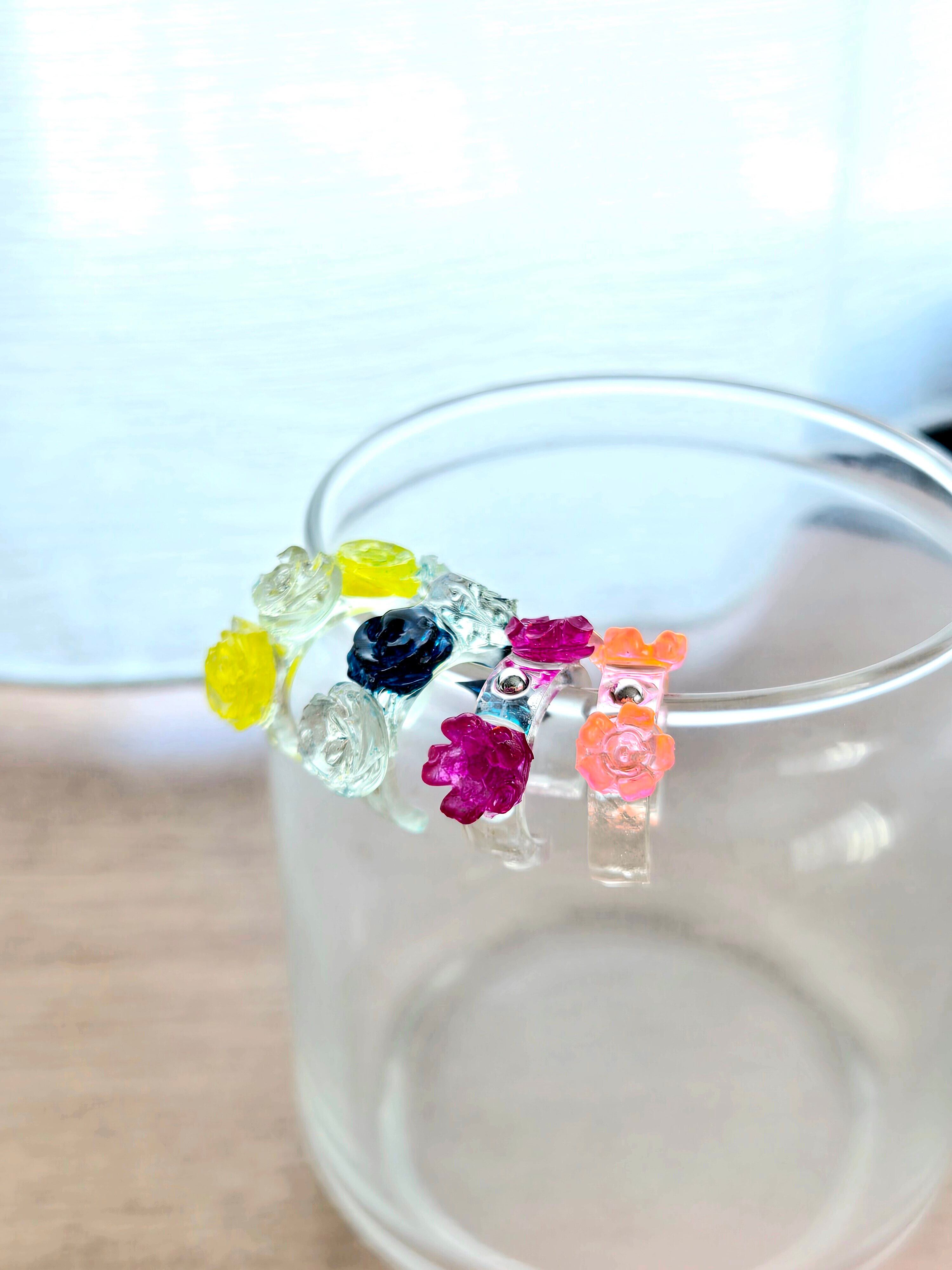 レジンを使い輪っかを作り、バラはレジンモールドを使用し、色つきバラを作りました❁⃘*.゚