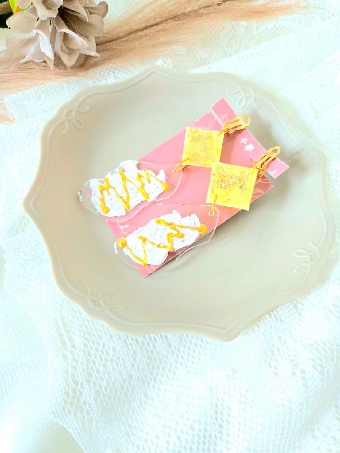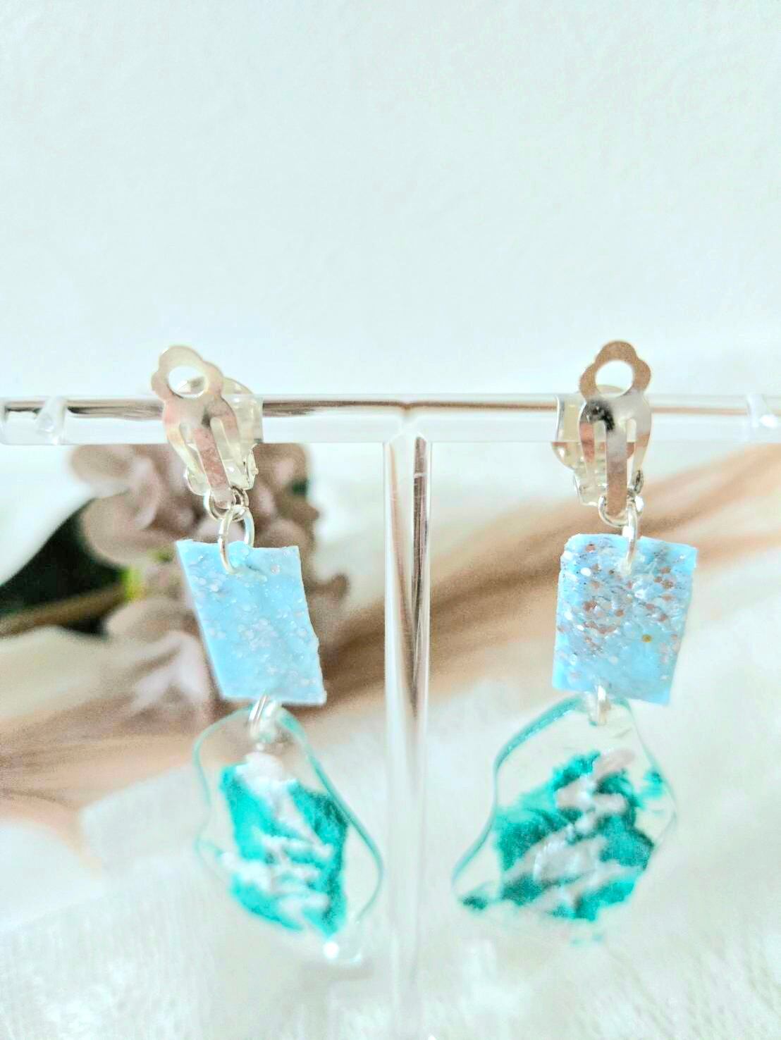 シーリングスタンプは四種を使っており、中にラメを入れて作りました!ピアスとは少し色味は異なりますが、似ている色をシーリングスタンプに使用してます✨