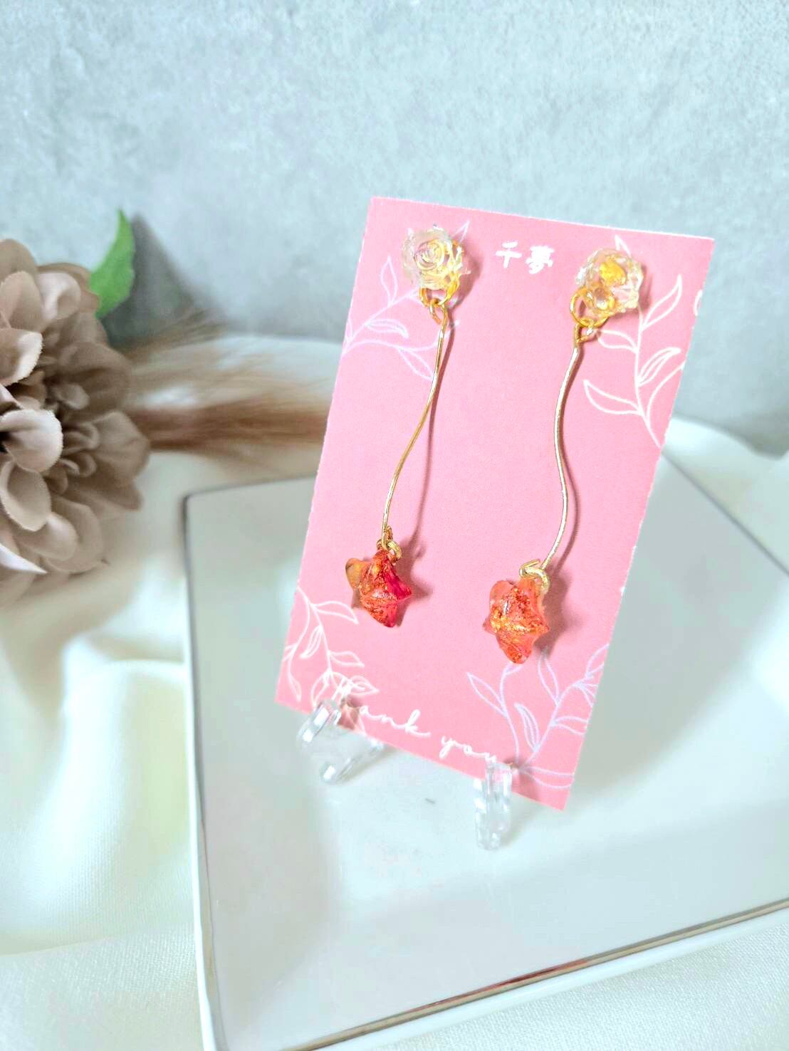 そして、イヤリングと少しかえ、バラと星を繋ぎユラユラと揺れるキレイめなピアスに仕上げました!