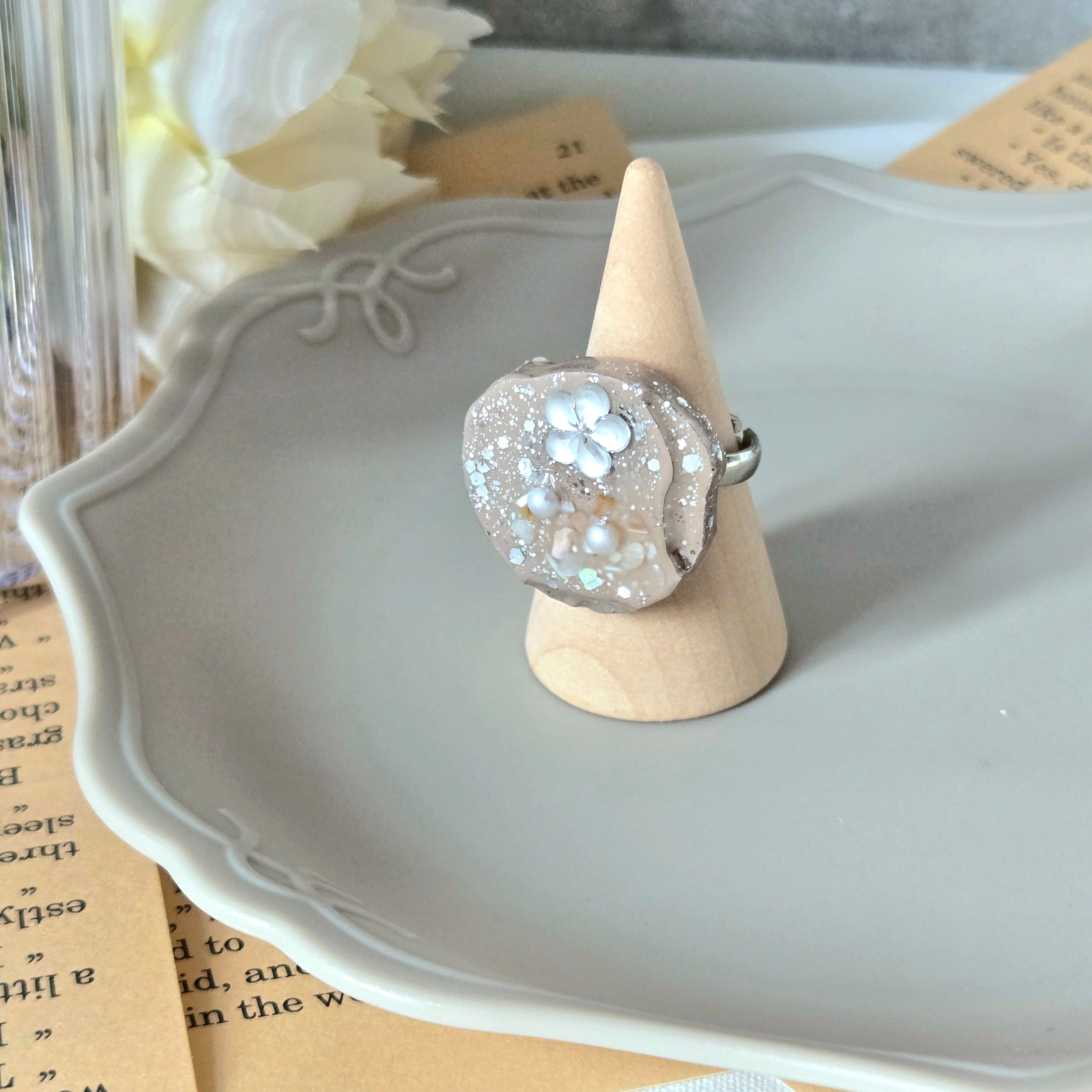 パールを大きさが違うのをのせ、貝殻は少しだけのせてます♡